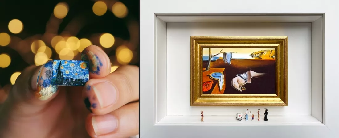 包羅萬象的創作媒材,也是《看啥小─微型藝術博物館》最引人入勝的焦點之一,將日常生活中的甜甜圈、西瓜、壽司、鉛筆、紙鈔,甚至廢棄紙箱、荒野隨地散落的枯枝等,都在經過藝術家異於常人的腦波處理後,變形幻化為幽默詼諧而怪誕奇趣的作品,甚至藉此轉譯大眾娛樂或經典藝術,讓觀眾在展場中也能驚喜巧遇蝙蝠俠、披頭四樂團(The Beatles)、索爾的「雷神之鎚」、電影《追殺比爾》(Kill Bill),甚至梵谷(Vincent Van Gogh)、達利(Salvador Dalí)與馬奈(Édouard Manet)等大師名畫!