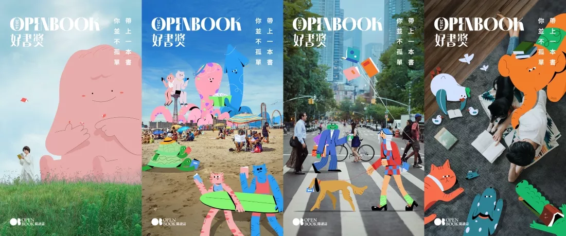 2024年的Openbook好書獎主視覺設計突破以往表現手法,透過攝影與插畫的創意結合,詮釋閱讀作為生命陪伴的深刻意涵。三位攝影師以擅長的生活風格影像,捕捉了現代人的日常浮世繪;而白輻射影像團隊則以奇幻的插畫創作為這些影像注入想像力,虛實交錯間呈現出書本陪伴的獨特風景。