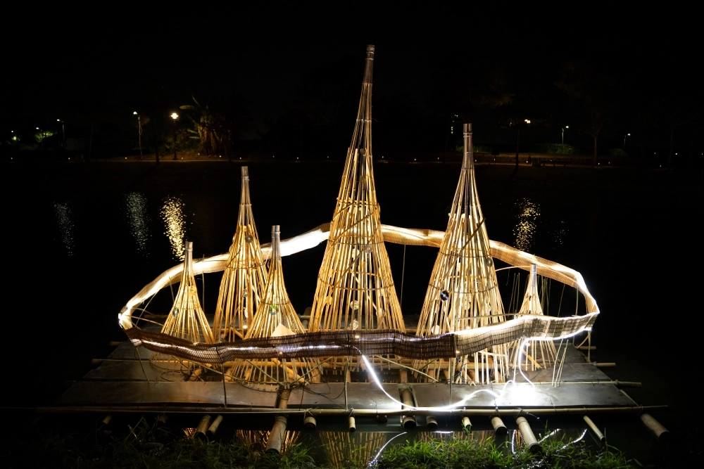 「月津超新星」徵件作品區,則成為大專校院及新秀藝術家的實驗場域,更有全國唯一以水上船屋展現空間裝置、平面、新媒體及表演藝術等各類藝術型態的作品,今年以《前望的回顧nostalgia》為徵選主題,共入選14件水域作品及8件船屋作品,為月津港燈節開創具多元實驗性的交流舞台。