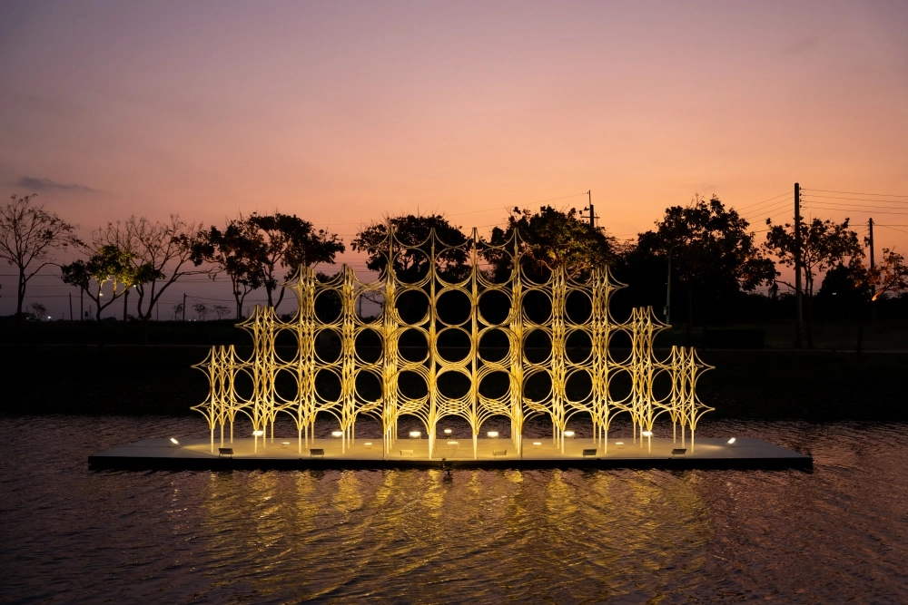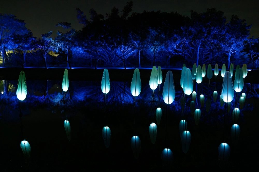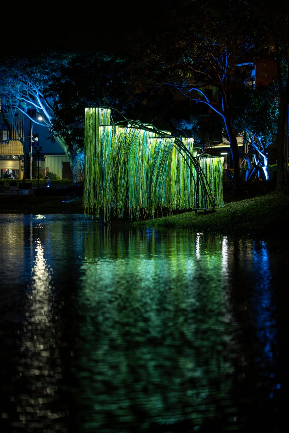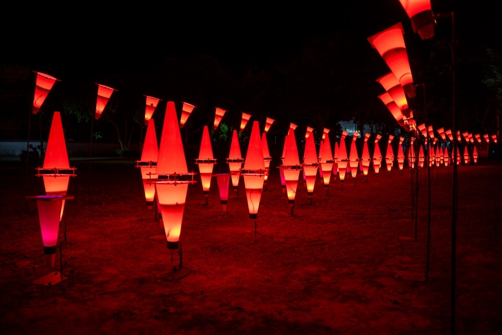文化局代理局長林韋旭說明:今年策展扣合主題「光的年輪」,呈現累積15年來的感動與創作深度。亮點作品包括位於藝術燈區的主燈《無盡光輪》,由知名藝術團隊「UxU Design有用主張」創作;另有水幕投影作品《光的年輪》由黑川互動媒體藝術操刀;而禹禹藝術工作室的作品《光聚》、先驗物件的《花火城邦》、日本藝術家森岡厚次《又一個月圓》等,結合在地蜂炮意象及科幻感的空間作品令人期待。與以往不同的是,今年新闢公19口袋公園,依現地自然環境設置4件植物意象的《榮光幻花》作品,以臺灣常見的姑婆芋、蕉葉、蒲公英、野花造型,利用金屬轉譯,以巨型花朵雕塑與光環境打造一座童話般的夢幻花園。