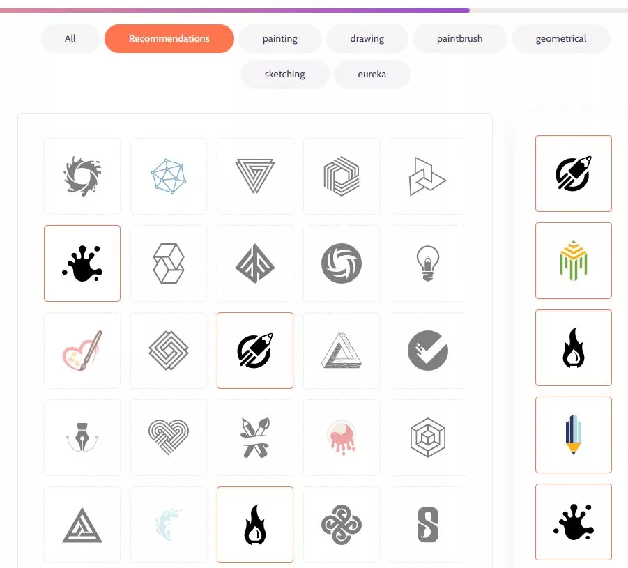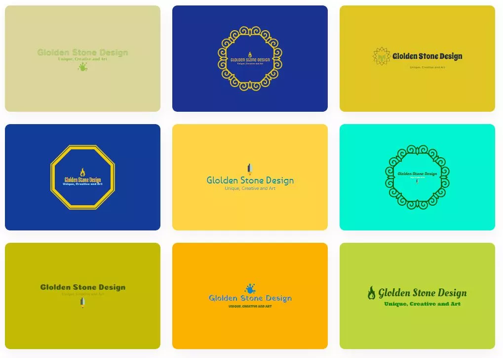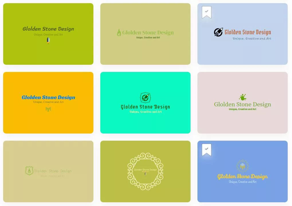 Designs.ai會根據上述六個步驟的設定,計算且完成如本畫面中的眾多Logo樣板。