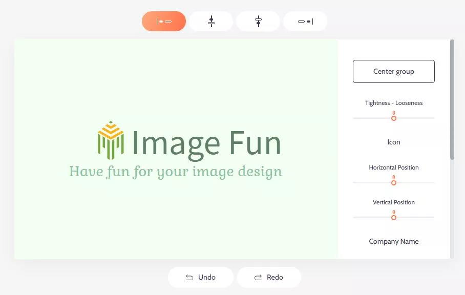 我們在步驟8只選擇一項Logo樣板,Designs.ai會提供編輯器,讓您繼續為標誌Logo進行調整的作業,例如可以調整Logo圖案與文字、標語之間的間距,對齊方式也可以調整,讓整個標誌Logo的產生更能符合需求。綜合上述的步驟,Designs.ai的LOGOMaker真的只需要按幾個按鍵,依照幾個簡單的操作流程,就能產生具有設計感的標誌。